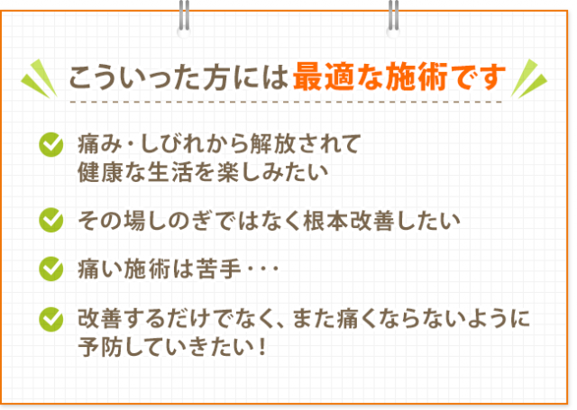 →原因を根本から取り除き、再発しにくい優しい施術法