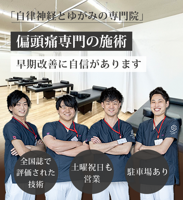 当院には偏頭痛でお悩みの方が多く来院され、改善に導いている事例が数多くあります。